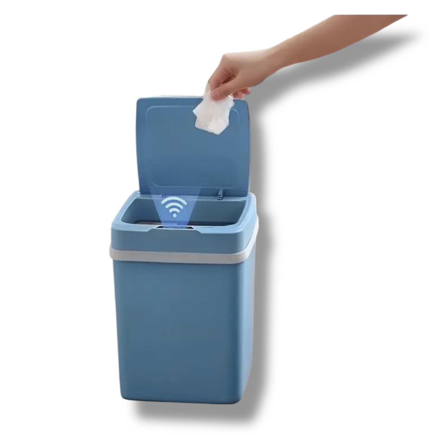 Bezdotykový senzorový odpadkový kôš Andy. Bezdotykový senzorový odpadkový kôš s moderným modrým dizajnom. Otváranie na pohyb ruky – maximálna hygiena bez dotyku.