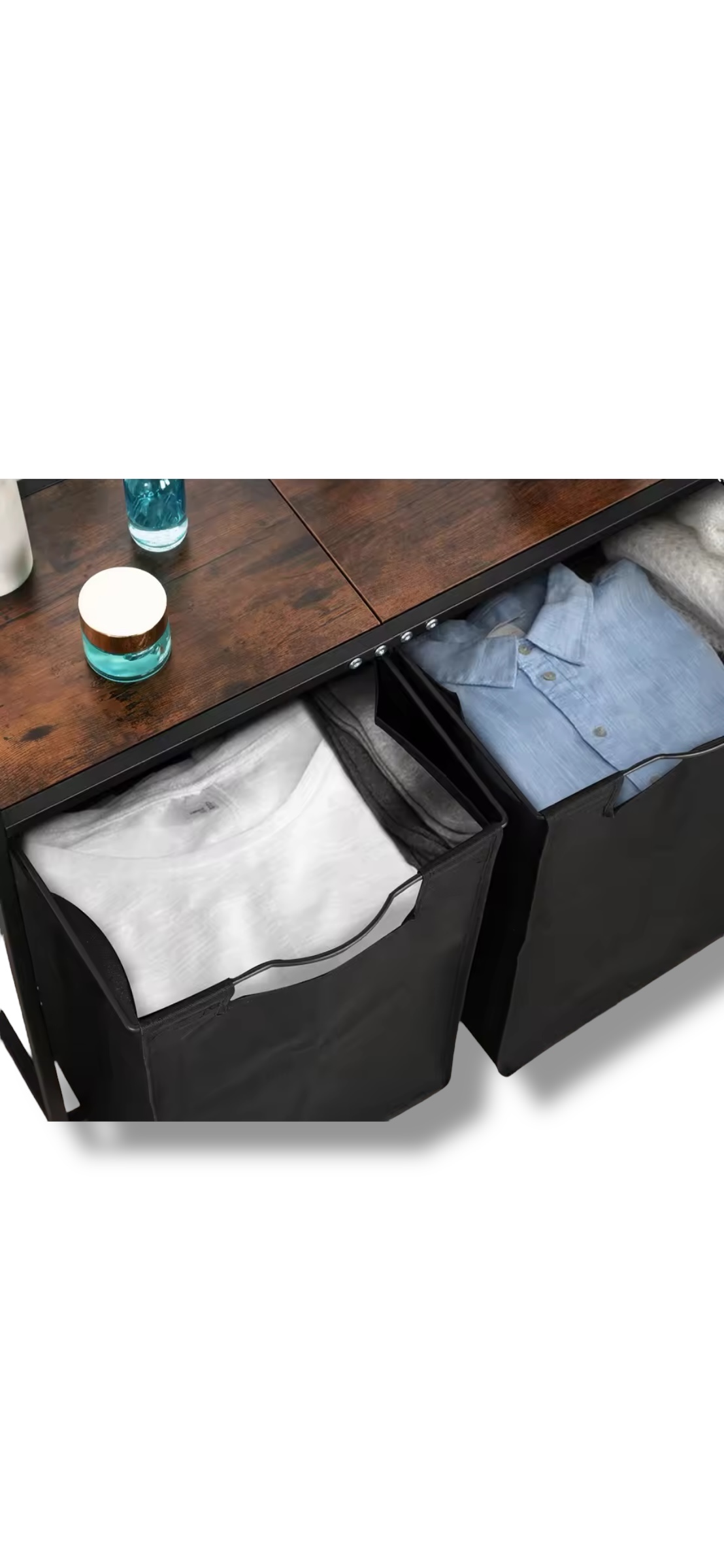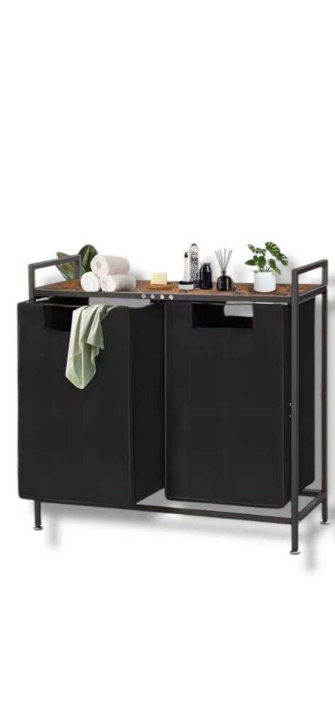 Praktický kôš na bielizeň Vavro kombinuje funkčnosť a moderný dizajn. Je vybavený dvoma ručnými vreckami, ktoré pomáhajú urýchliť sušenie bielizne. Zberač bielizne obsahuje úložný priestor, ideálny na organizáciu pracích prostriedkov či doplnkov.