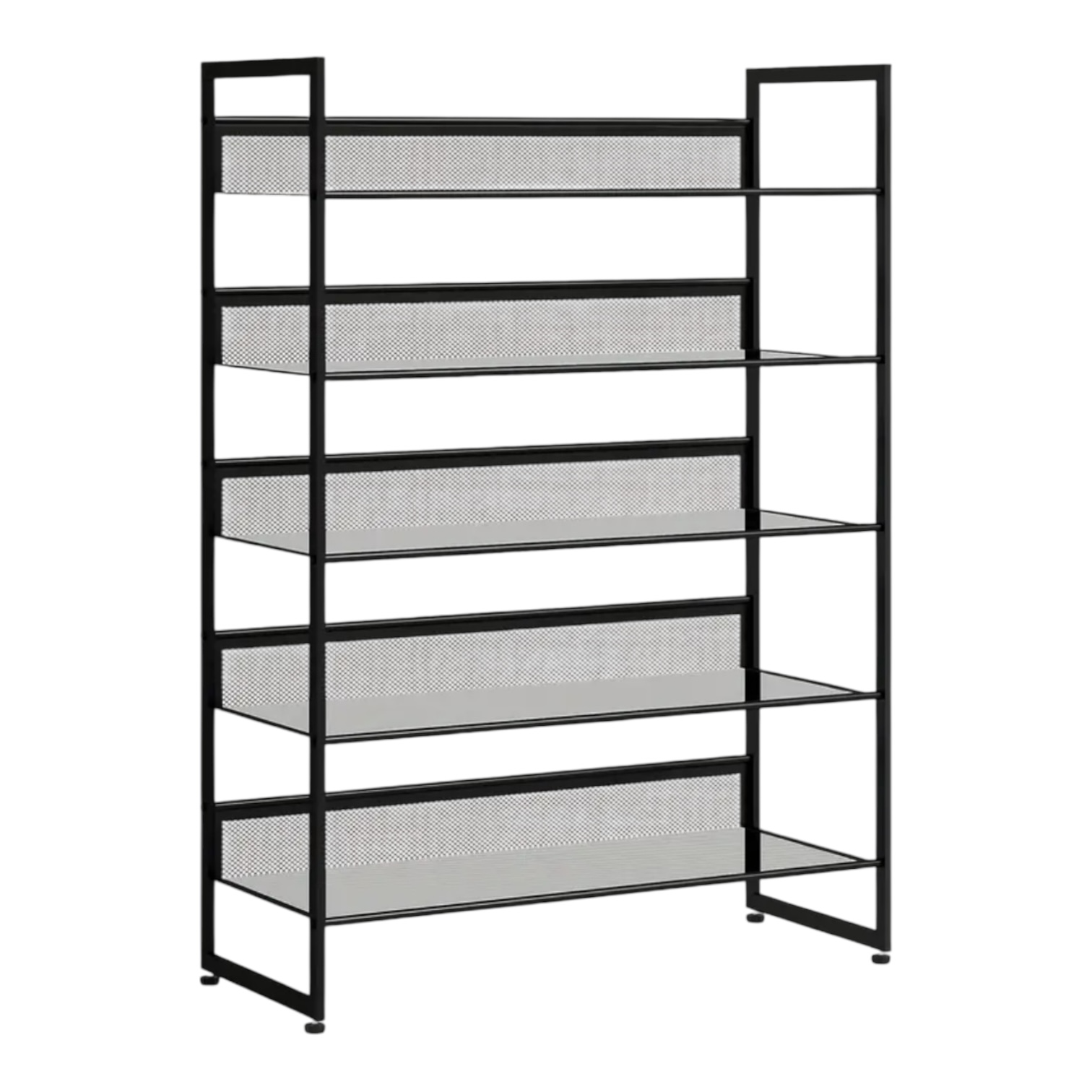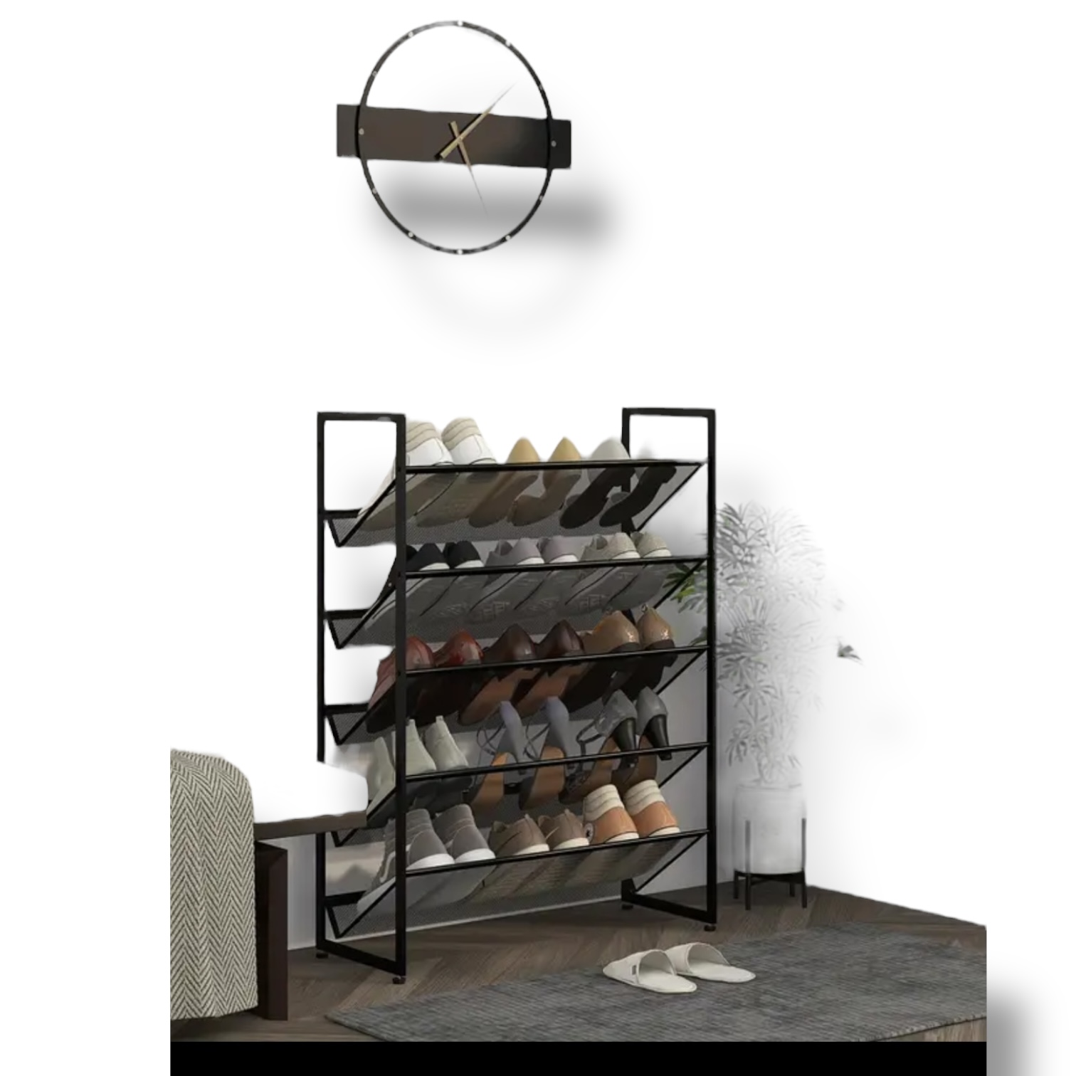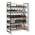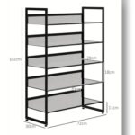 Robustná kovová konštrukcia v čiernej farbe zaručuje stabilitu, dlhú životnosť a jednoduchú údržbu. 5 priestranných políc pojme až 15–20 párov topánok – od športovej obuvi po domáce papuče. Každú policu je možné vyklopiť o 45°, čo umožňuje pohodlné uloženie aj vyššej obuvi a lepší prehľad.